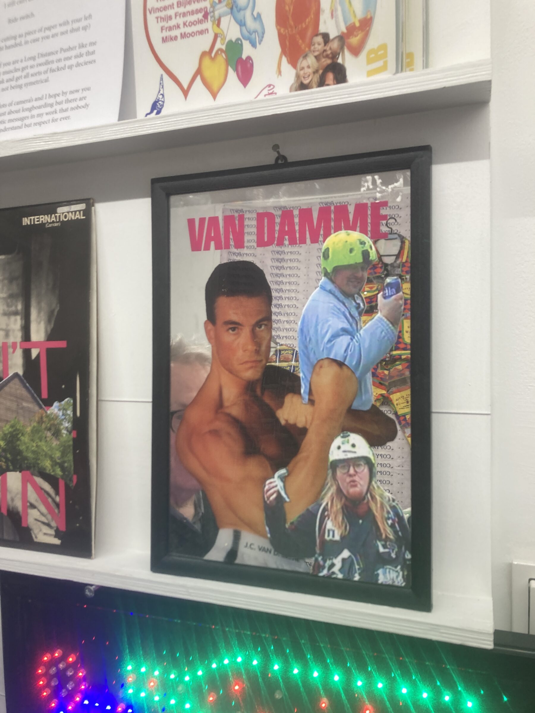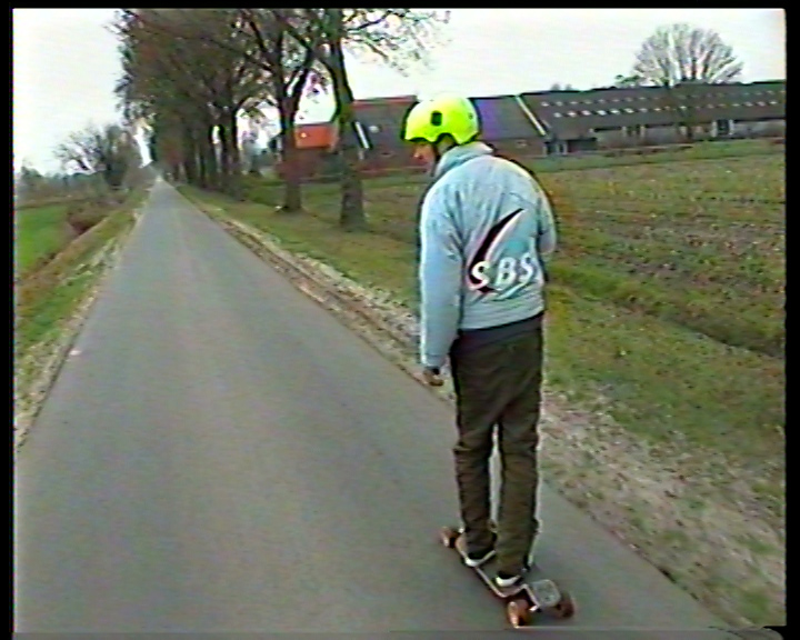 A pounding beat accentuates the flashing of blood moons filling the distortion-ridden screen. No, this is not the end of Lars von Trier’s Melancholia, but hold your breath you will. Von Trier’s is the planet whose impact will bring the whole earth to an end, while on the other hand it is Jezus Cinco’s video art moons that give him (and us) the power to defeat evil. In addition to creating his own analog variety of glitch art, the Groningen-born artist is known for his longboard vlogs. And now, together with his Rotterdam confrere Rowan van As, Jezus Cinco created the exhibition Long Bord Slaatje especially for HOK. Both artists have a fascination with forgotten visual culture, strange images and dirty salads that can be tasty, nevertheless. Their work creates an interaction between everyday reality and experiencing the American dream.